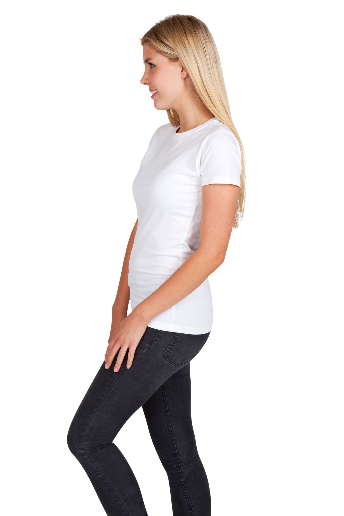 特点:这款185 克中等重量的 女式T 恤,采用 100% 精梳棉制成,其表面光滑细腻,非常适合用于印刷和刺绣,精梳棉比普通棉更加光滑且结实。
